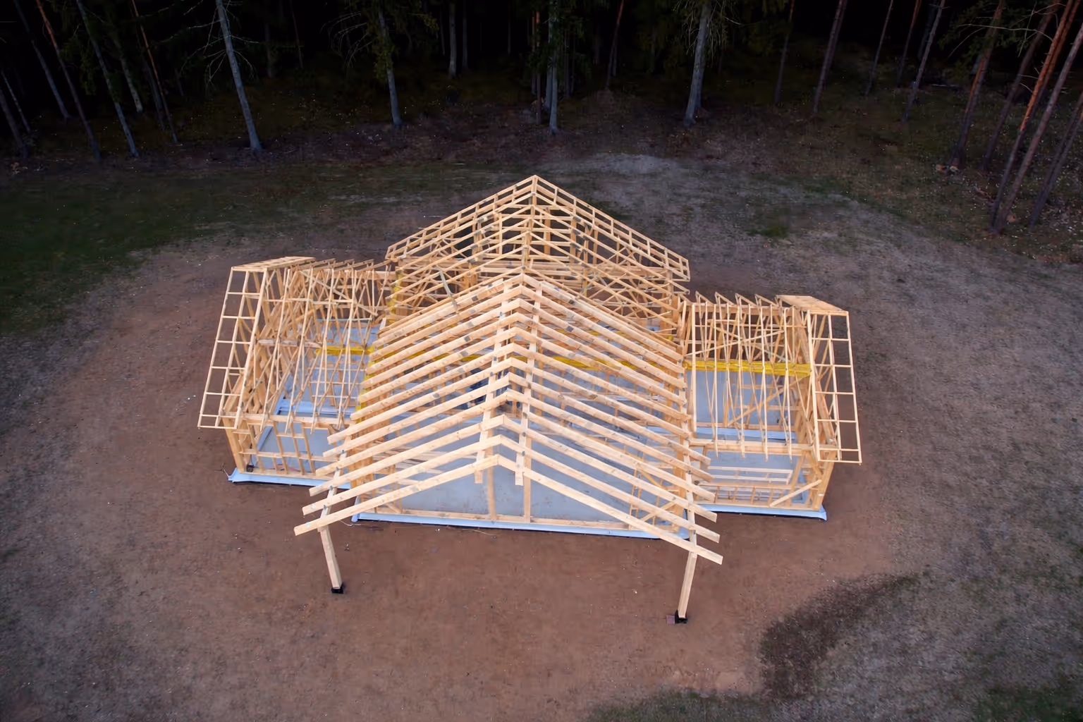 Wooden trusses offer the possibility to create large-span structures of up to 35 meters without the need for load-bearing internal walls. They also allow for customized solutions, adapting trusses to virtually any shape.