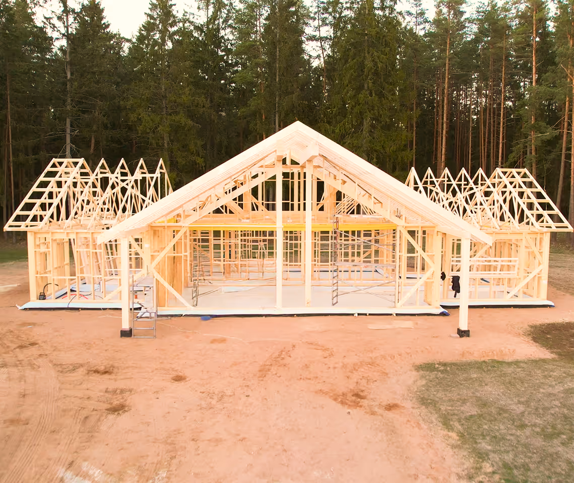 Manufacturing of timber-frame house structures, providing a full service cycle—from structural design to precise production and preparation for installation on site. The structures are produced according to individual projects, using modern equipment and engineering calculations to ensure the building’s stability, energy efficiency, and long-term durability. Such solutions significantly speed up the construction process, as the finished frame elements only need to be assembled on site, reducing both construction time and costs. The company adapts the structures to the client’s project and technical requirements, ensuring a reliable and high-quality foundation for building modern timber-frame homes.